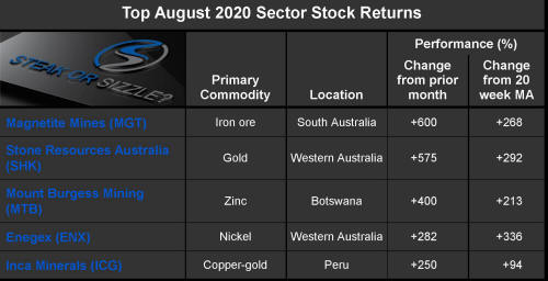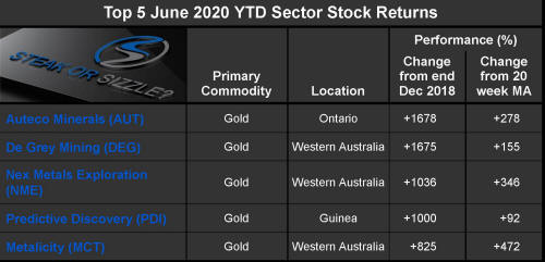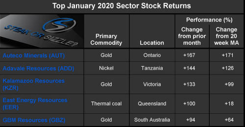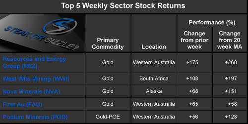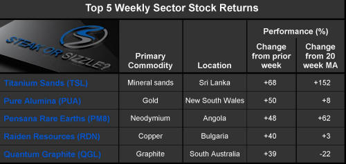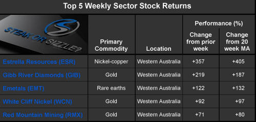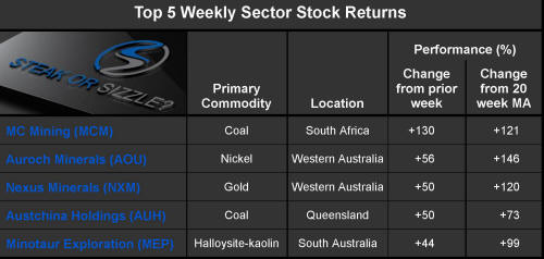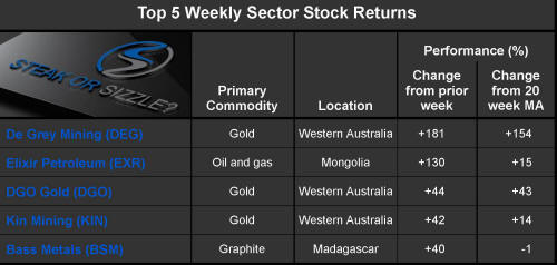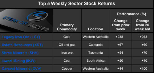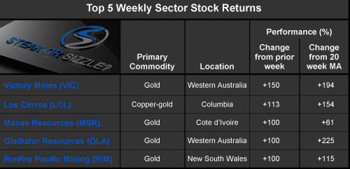 The 'Steak or Sizzle?' blog comments on each of the top five performing resources stocks in the prior week.