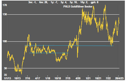 Still vulnerable cyclical conditions were aggravated in the second half of 2015 by a push from investors worldwide to reduce risk. Sector prices were pushed to a new cyclical low some 90 months after the cyclical peak in sector equity prices but these conditions were reversed through 2016 and 2017 as global growth accelerated although, for the most part, sector prices did little more than revert to 2013 levels which had once been regarded as cyclically weak.