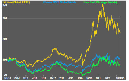 Then, modest sector price gains occurred in the midst of sometimes highly disruptive macro conditions while the China growth theme was still building steam.