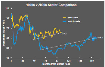 Relative stability in sector prices suggests a chance for individual companies genuinely adding value through development success to see their share prices move higher. This was the experience in the late 1990s and early 2000s.