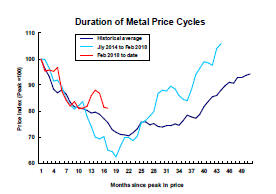 Time, of itself, is not important but the sequence of adjustments which are typical of a commodity price cycle and contribute to changed prices and expectations does take time. A more detailed analysis of metal price cyclical duration is available here.