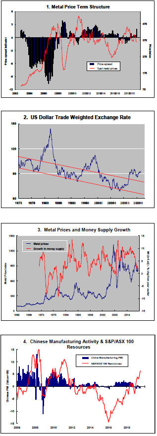 The greatest danger to a metal price cycle comes when monetary policy settings begin to tighten in response to higher inflation with an adverse effect on output growth and investment spending.
