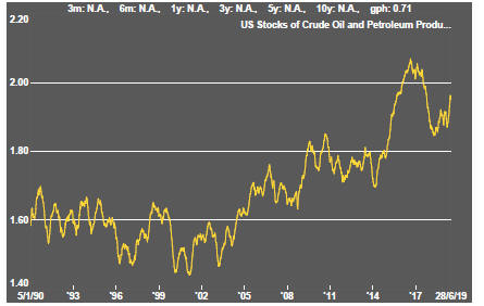 The copper price has remained relatively stable for the best part of 12 months. It had been pointing to a weaker economic outlook than bond prices had been signalling. The recent sharp decline in yields is now indicating a more pessimistic outlook within the financial markets, raising the prospect of an upcoming relative price adjustment to resolve the difference.