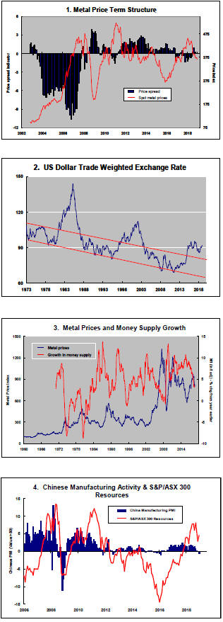 The PortfolioDirect cyclical guideposts suggest that the best possible macroeconomic circumstances for the resources sector will involve a sequence of upward revisions to global growth forecasts, the term structure of metal prices once again reflecting rising near term shortages, a weakening US dollar, strong money supply growth rates and positive Chinese growth momentum.