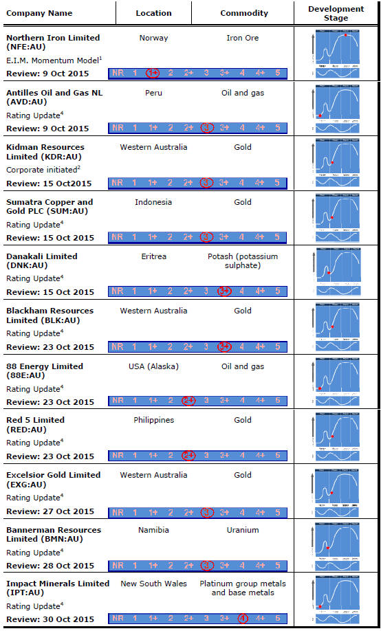 1. The E.I.M. Capital Managers share price momentum model is underpinned by analytical work on sector share price movements which suggests that stocks in the sector are prone to experience relatively brief periods of strong outperformance interspersed with lengthy periods during which share price movements revert to the norm (i.e. display returns closer to the sector median). The momentum model seeks to identify those stocks that are in the transition between median performance and a material upward move in share prices. The rating given to stocks identified from the momentum model implies a view about whether the evident investor interest is warranted (in which case a company receives a high numerical score) or has been misplaced (warranting a low score).