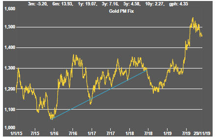Stronger bond yields have been putting downward pressure on gold prices. Gold prices picked up slightly at the end of the week after news questioning the validity of trade talk optimism ratcheted up scepticism about the growth outlook and the yield trajectory.