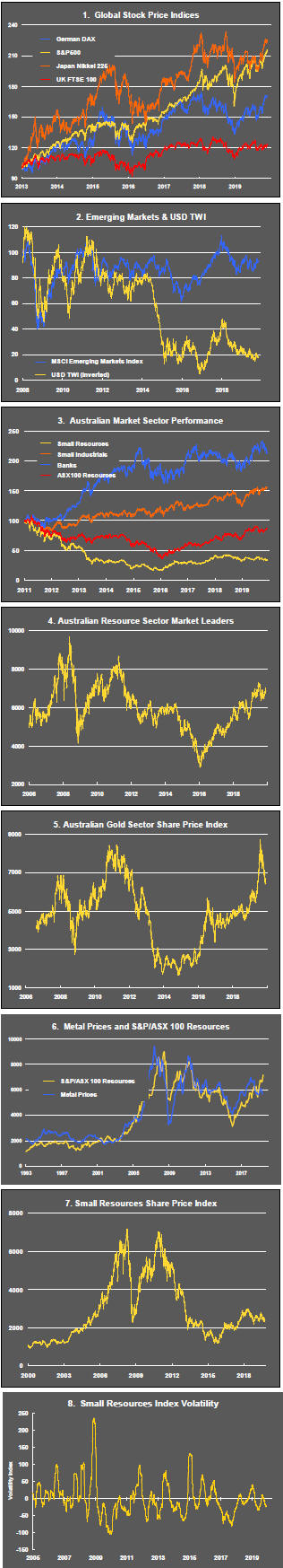 Metal and mining stock prices have not appreciated in concert with the broader market. Nor have the market leaders declined although weakness has been evident through other parts of the sector. Australian gold stocks underperformed their North American counterparts.