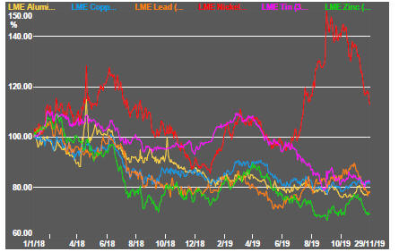 Metal prices were mixed. Nickel and zinc prices were especially weak. For the week overall, gold lost ground slightly while platinum, palladium and silver prices were higher. Iron ore, coal and, to a lesser extent, oil prices also rose.