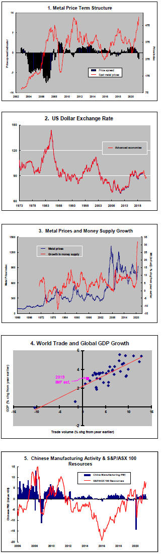 The greatest danger to a metal price cycle comes when monetary policy settings begin to tighten in response to higher inflation with an adverse effect on output growth and investment spending.