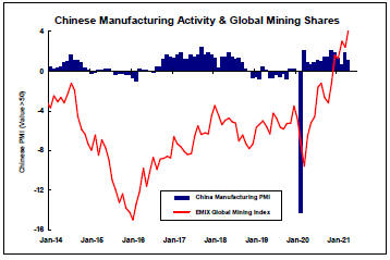 In the absence of an effect on the real economy, the unprecedentedly strong infusion of global liquidity has helped stoke asset prices, including the prices of those commodities of particular importance to the mining industry.
