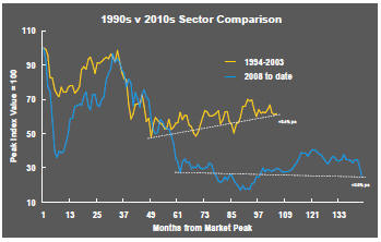Relative stability in sector prices suggests a chance for individual companies genuinely adding value through development success to see their share prices move higher. This was the experience in the late 1990s and early 2000s.