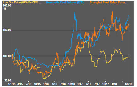 Iron ore prices have failed to reflect the ongoing expansion in manufacturing output although coal and steel prices have risen once again.