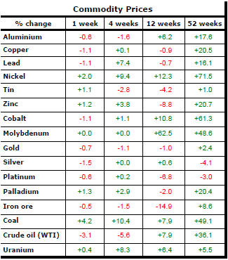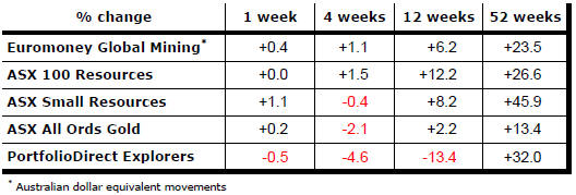 Weekly returns within the materials sector were positive with the strongest gains once again among the largest companies in the sector.