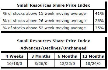 Australia’s small resources share price index showed a glimpse of strength and some building evidence of the beginnings of a potential cyclical transition away from the larger cap companies in favour of the smaller end of the market.
