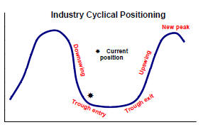 The chart illustrates the cyclical classifications used to define the positioning of the metal markets. The cyclical positioning informs recommendations about the allocation of funds within the sector.