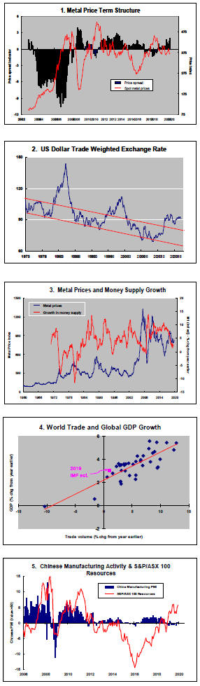 The greatest danger to a metal price cycle comes when monetary policy settings begin to tighten in response to higher inflation with an adverse effect on output growth and investment spending.