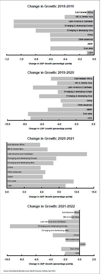 Positive variations in IMF growth forecasts during 2021 have given way to downward revisions as the negative forces detrimentally affecting growth prior to the onset of the COVID-19 pandemic reassert themselves and as emergency policy measures are withdrawn.