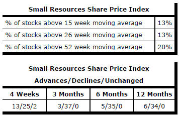 With rising volatility, the small resources share price index fell 5.7% during the week. The resources stocks in the S&P/ASX 100 fell 4.1%. Energy stocks were pushed 7.3% lower during the week despite firmer crude oil prices through the week than had prevailed in the week before.