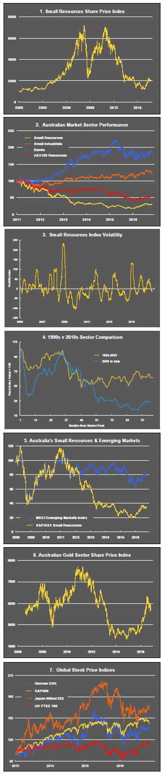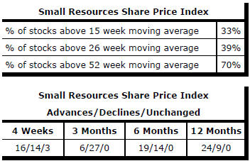 The larger cap stocks, more closely aligned to broader equity market conditions, were lower for the week but the gain in the small resources index has still left the sector in negative territory over the past three months and seemingly unable to break into higher ground after the improved performance in the first half of 2016.