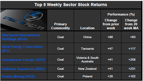The top performing ASX-listed stocks during the week all had a coal connection. While these moves have been associated with some specific company circumstances, they also reflected, to some extent, improved investment sentiment toward the sector as a result of recently higher commodity prices.
