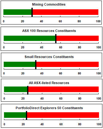 With a median decline in prices of ASX-listed resources companies since the beginning of 2011 of 89% (and 30% of companies suffering a decline of more then 95%), the majority of stocks remain prone to strong 'bottom of the cycle' leverage in response to even slight improvements in conditions.