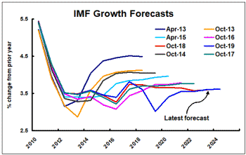 The Fund cut back its 2019 and 2020 growth forecasts in its October 2019 review of the world economy.