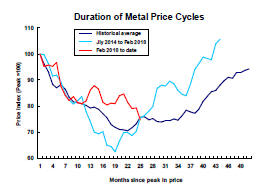 Time, of itself, is not important but the sequence of adjustments which are typical of a commodity price cycle and contribute to changed prices and expectations does take time. A more detailed analysis of metal price cyclical duration is available here.