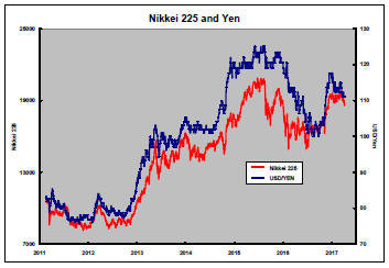 The weaker US dollar had been adding some downward pressure to Japanese equity prices which have a long history of being correlated with currency movements.