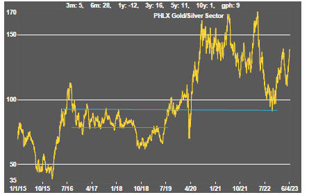 Still vulnerable cyclical conditions were aggravated in the second half of 2015 by a push from investors worldwide to reduce risk. Sector prices were pushed to a new cyclical low some 90 months after the cyclical peak in sector equity prices but these conditions were reversed through 2016 and 2017 as global growth accelerated although, for the most part, sector prices did little more than revert to 2013 levels which had once been regarded as cyclically weak.