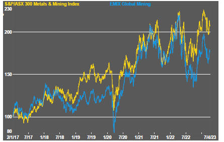 In the absence of a market force equivalent to the industrialisation of China, which precipitated an upward break in prices in the early 2000s, a moderate upward drift in sector equity prices over the medium term is likely to persist.