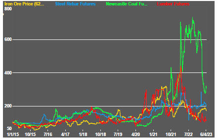Then, modest sector price gains occurred in the midst of sometimes highly disruptive macro conditions while the China growth theme was still building steam.