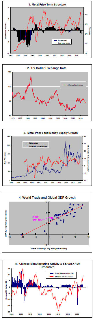 The greatest danger to a metal price cycle comes when monetary policy settings begin to tighten in response to higher inflation with an adverse effect on output growth and investment spending.