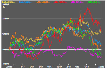 All of the major daily traded non-ferrous metal prices were heading in the same direction as they appear to have set out on a new cyclical path since February.