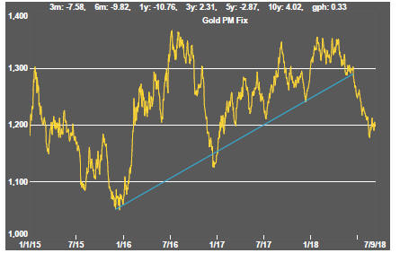 Slightly higher bond yields which would normally suggest improved growth conditions favouring higher raw material prices have not been reflected in the metal price movements which suggest weakening global growth conditions.