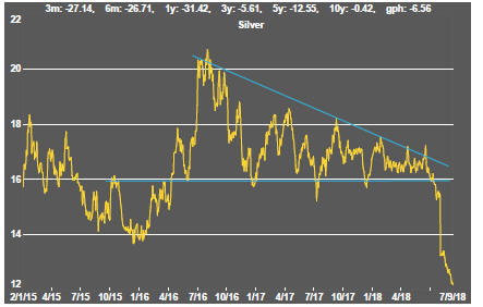While the palladium and platinum price decline stalled, silver prices continued their sharp descent.