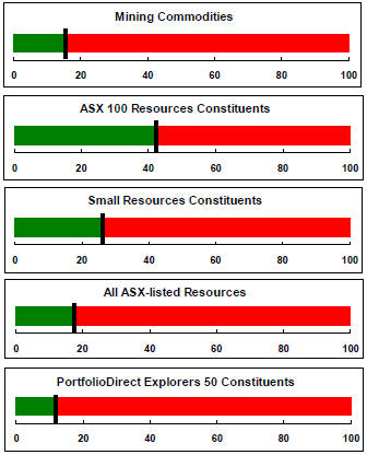 With a median decline in prices of ASX-listed resources companies through the cycle of 89%(and 30% of companies suffering a decline of more then 95%), the majority of stocks remain prone to strong 'bottom of the cycle' leverage in response to even slight improvements in conditions.