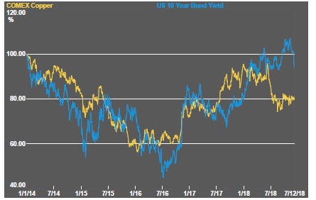 Copper price movements had been at odds with higher bond yields which would normally signal strengthening inflation and growth, both good signs for the metal markets. The divergence had intimated the possibility of a future resolution of the implied difference in opinion as the global growth trajectory became clearer. In the past week, the verdict appears to have favoured weaker growth and lower bond yields with, at best, stable copper prices.