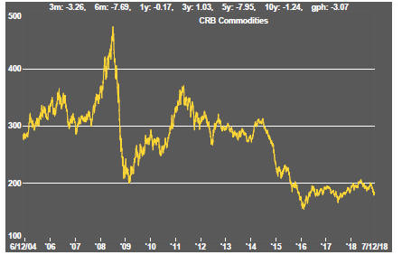 The general upswing in commodity prices since mid 2017 had been given added impetus by stronger crude oil prices which have, more recently, underpinned a reversal in the trend.