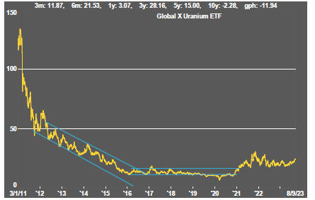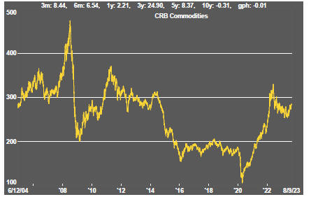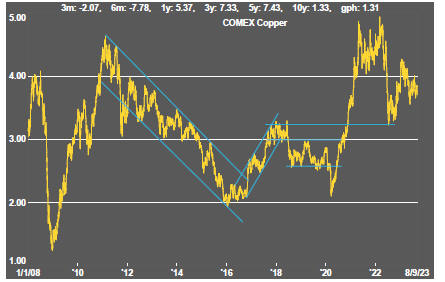 Then, modest sector price gains occurred in the midst of sometimes highly disruptive macro conditions while the China growth theme was still building steam.