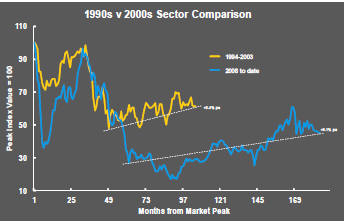 Relative stability in sector prices suggests a chance for individual companies genuinely adding value through development success to see their share prices move higher. This was the experience in the late 1990s and early 2000s.
