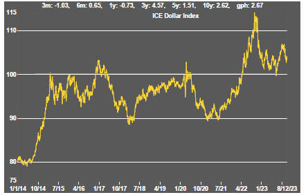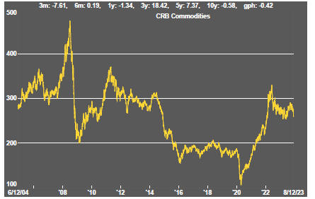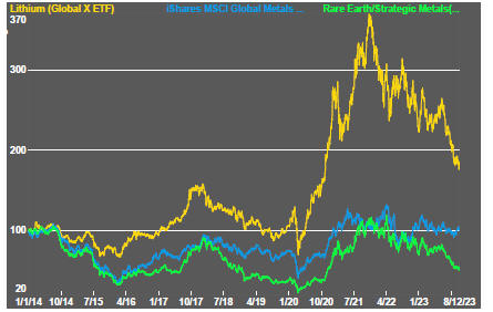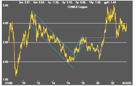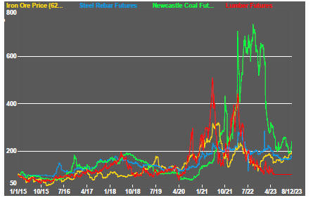 Then, modest sector price gains occurred in the midst of sometimes highly disruptive macro conditions while the China growth theme was still building steam.