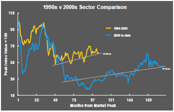 Relative stability in sector prices suggests a chance for individual companies genuinely adding value through development success to see their share prices move higher. This was the experience in the late 1990s and early 2000s.