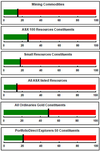 With a median decline in prices of ASX-listed resources companies since the beginning of 2011 of 89% (and 30% of companies suffering a decline of more then 95%), the majority of stocks remain prone to strong 'bottom of the cycle' leverage in response to even slight improvements in conditions.