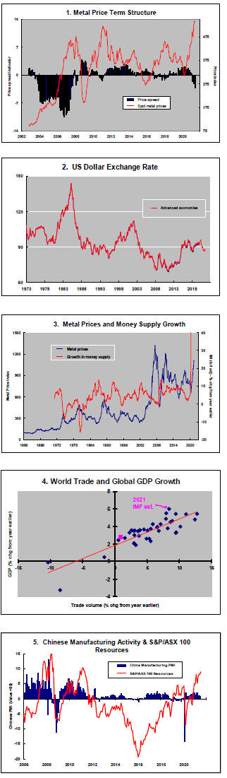 The greatest danger to a metal price cycle comes when monetary policy settings begin to tighten in response to higher inflation with an adverse effect on output growth and investment spending.
