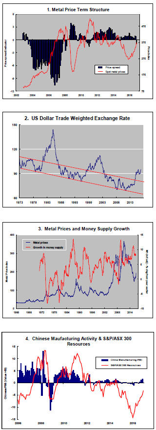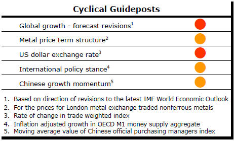From mid 2014, the metal market cyclical position was characterised as ‘Trough Entry’ with all but one of the PortfolioDirect cyclical guideposts - the international policy stance - flashing ‘red’ to indicate the absence of support.