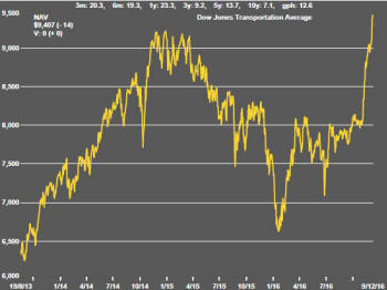 The Dow Jones Transportation Average which is widely regarded as a reflection of US domestic economic activity has rushed past its previous high water mark at the beginning of 2015.