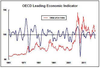 From mid 2014, the metal market cyclical position was characterised as ‘Trough Entry’ with all but one of the PortfolioDirect cyclical guideposts - the international policy stance - flashing ‘red’ to indicate the absence of support.