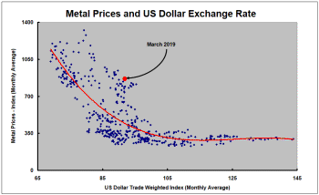 The level and direction of metal prices are consistent with a cyclical downswing dating from February 2018 despite a recent departure from the average trajectory since 1960 over recent weeks.