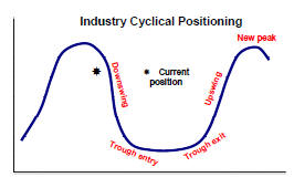 The chart illustrates the cyclical classifications used to define the positioning of the metal markets. The cyclical positioning informs recommendations about the allocation of funds within the sector.