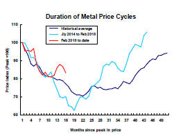 Time, of itself, is not important but the sequence of adjustments which are typical of a commodity price cycle and contribute to changed prices and expectations does take time. A more detailed analysis of metal price cyclical duration is available here.